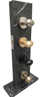 這款鵝蛋型設計最大的特色,在於外觀採用無突出的圓形鎖孔十字鑰匙,使手指能自然握入鵝蛋型把手並順勢轉動門片,而鎖體本身完全與門片內部結合,不會外露。這樣的結構要成功運作,背後需要精準的五金加工配合,也必須依照台灣常見門片厚度35-48mm做最佳化設計。